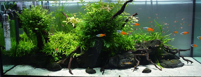 ADA Aquarium 60x45x40 cm Fische: Königssalmler, Regenbogenfische